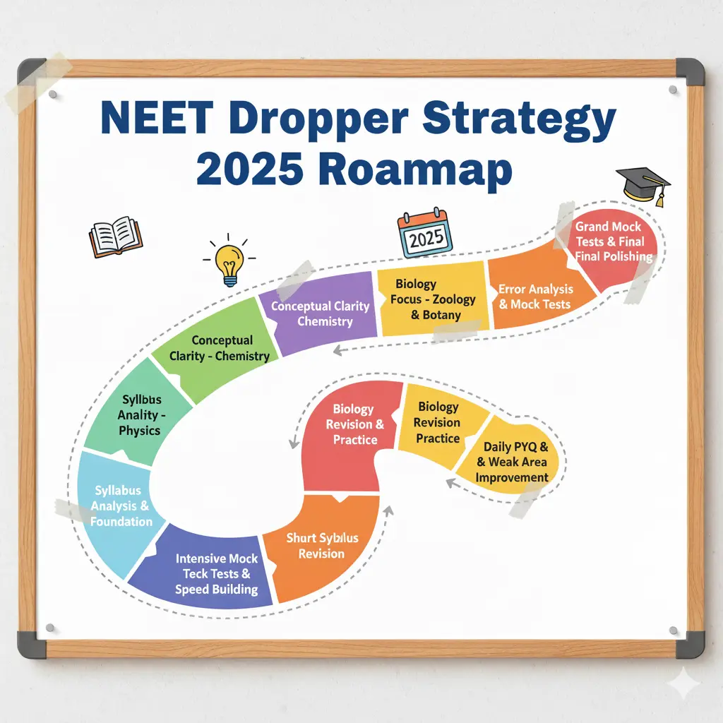 The ultimate NEET drop year roadmap and dropper strategy for 2025. Follow our success plan, daily schedule, and avoid common mistakes to crack NEET.